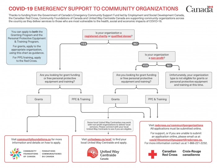 - Together, the Canadian Red Cross, Community Foundations of Canada and United Way Centraide Canada are collaborating with the Government of Canada to flow ECSF support to those who need it most right now.